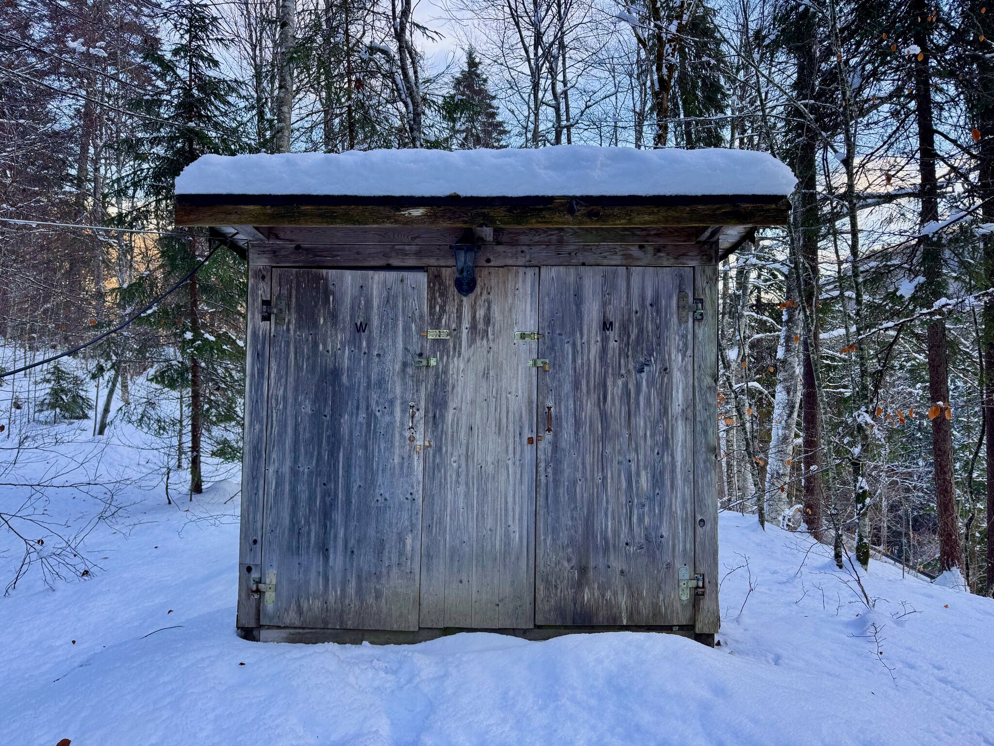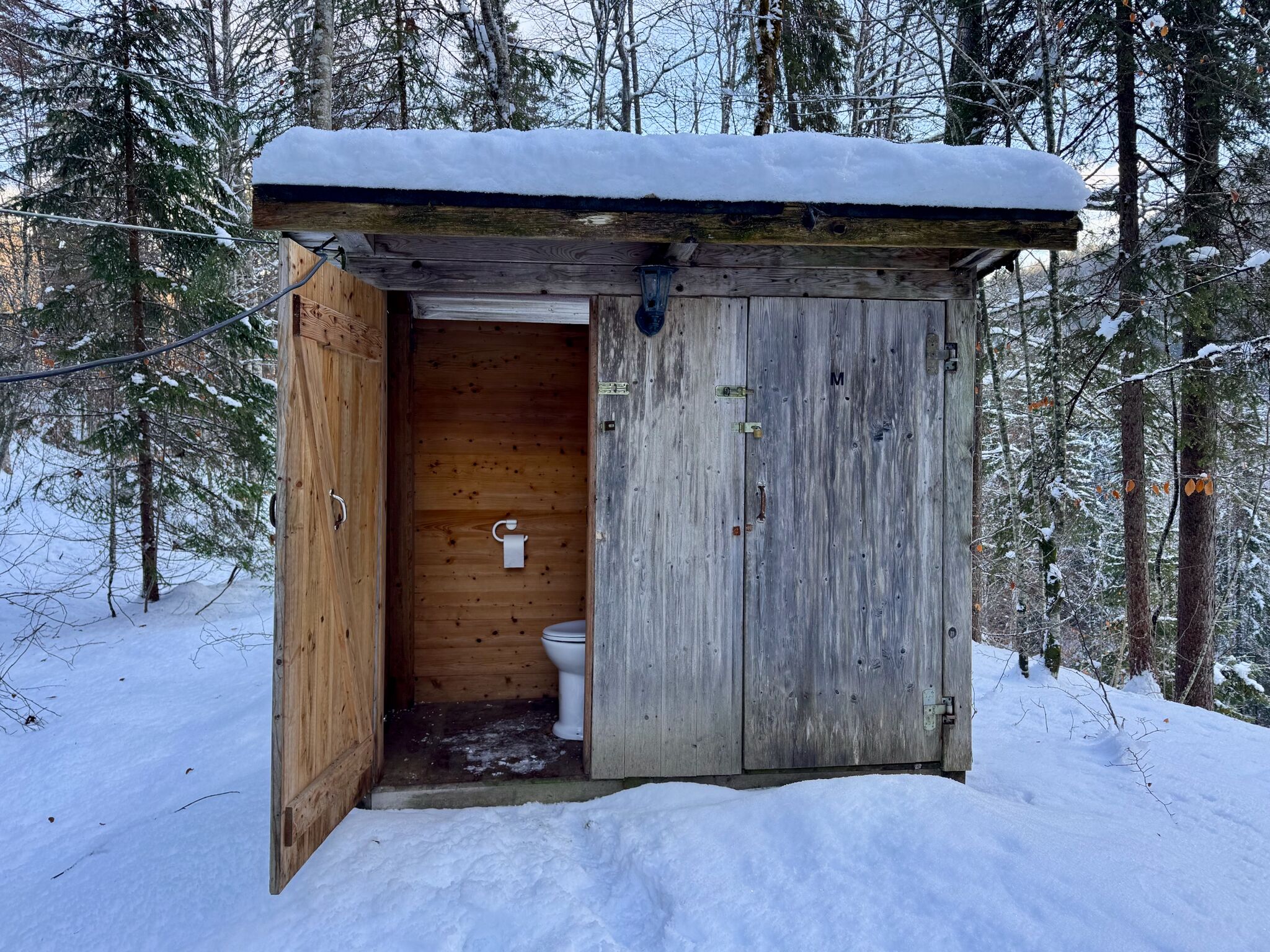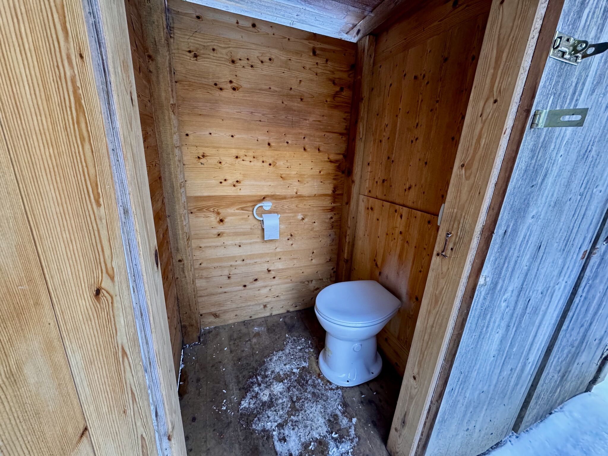 Die beiden Plumpsklos befinden sich wenige Meter neben der Hütte.