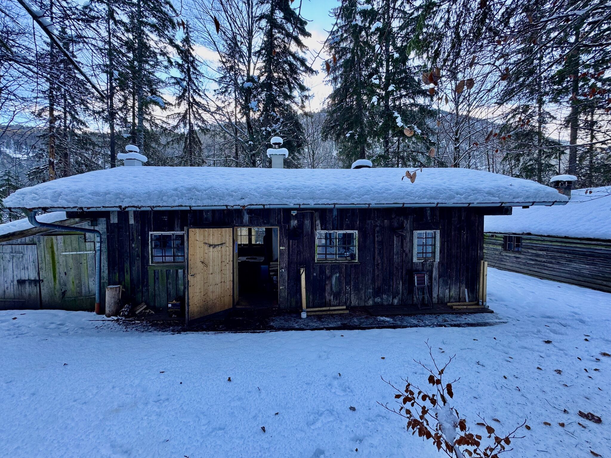 Optional kann eine Zusatzhütte direkt neben der Haupthütte hinzugebucht werden. Diese bietet keine Übernachtungsmöglichkeiten, jedoch Platz für bis zu 30 Personen und eignet sich ideal für Feiern, Workshops oder als zusätzlicher Aufenthaltsraum.