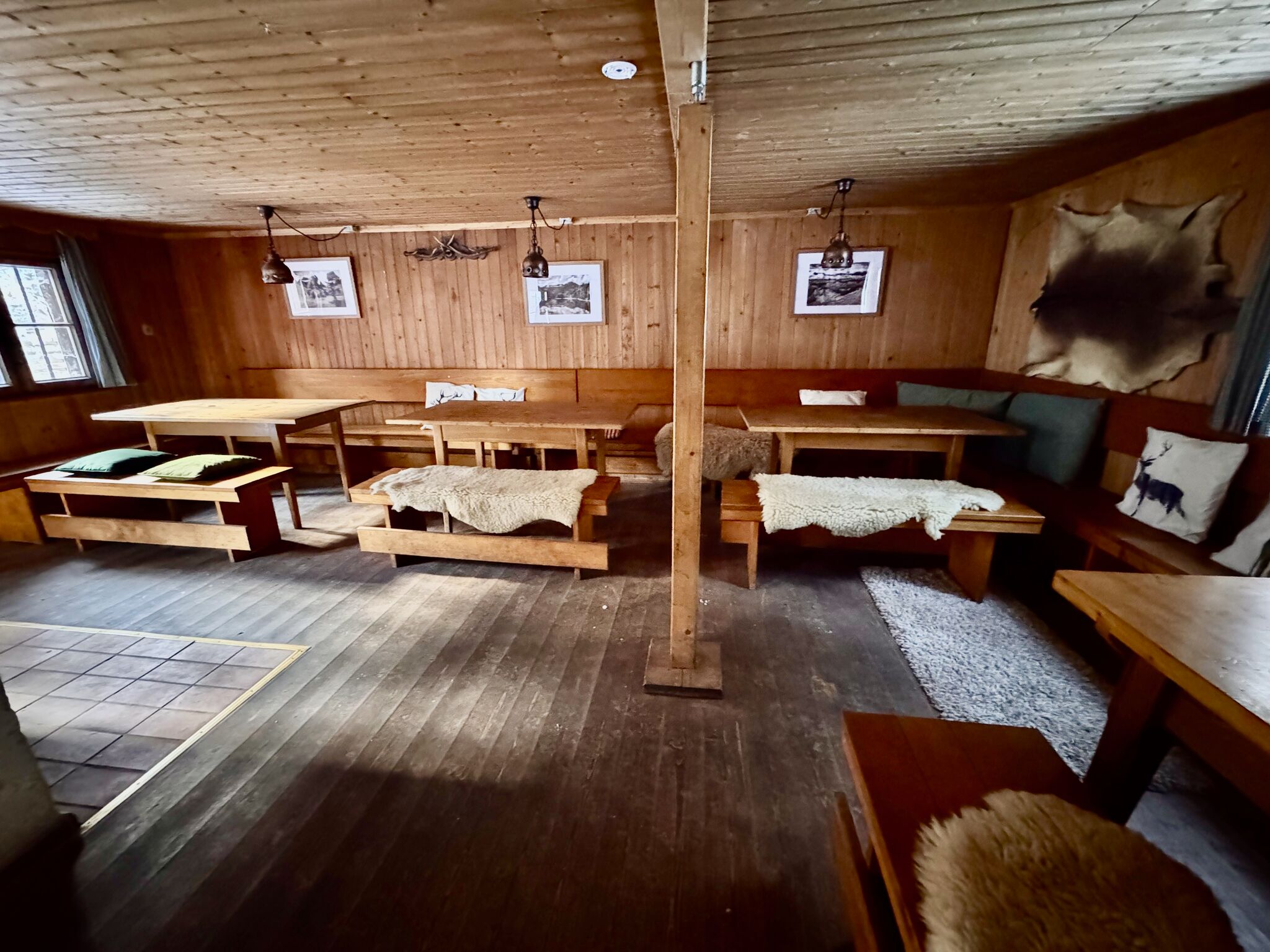 Die Hütte bietet eine bewusst einfache, ursprüngliche Ausstattung ohne Strom. Wasser stammt aus einer Quelle direkt an der Hütte, die sanitären Anlagen bestehen aus Plumpsklos – ein besonderes Erlebnis für alle, die Ursprünglichkeit und Natur schätzen.